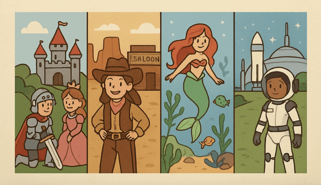 Through a variety of games, crafts, and activities, girls will journey from the realms of knights and princesses to the rugged landscapes of the West, the mysteries of life under the sea, and the boundless possibilities of Futureland.